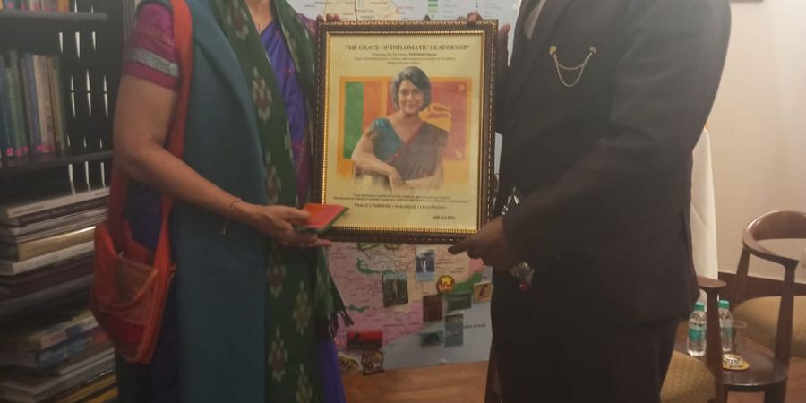 During the ceremony, Mr. Naidu presented a specially designed digital portrait of Her Excellency Mahishini Colonne, as a gesture of appreciation for her distinguished diplomatic service and her contribution to strengthening India–Sri Lanka cultural relations. Her Excellency warmly appreciated the gesture.