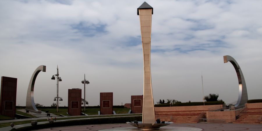 The layout of the memorial is open and harmonious, with wide pathways, manicured lawns, and open skies, creating a space that feels peaceful and inspiring. The use of stone, symmetry, and minimalist design elements gives the memorial a timeless feel, allowing the focus to stay on its message and meaning.